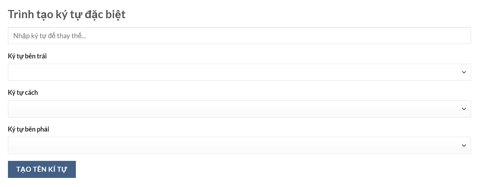 bên phải, dấu cách tùy ý. Sau đó nhấn tạo tên kí tự.